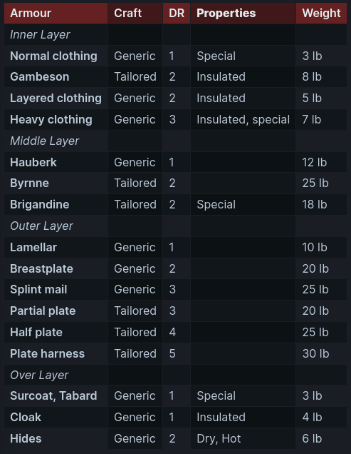 Up until writing this article, and chasing this idea from the beginning and going over points and facts and ideas I have had sporadically over the years, I had not yet fully solved this system. I have had a set of layered armour ready for the equipment section, but I had not yet figured out how to fix the Defense issue. I guess it took this article in order for me to get there, and wow, it feels awesome.