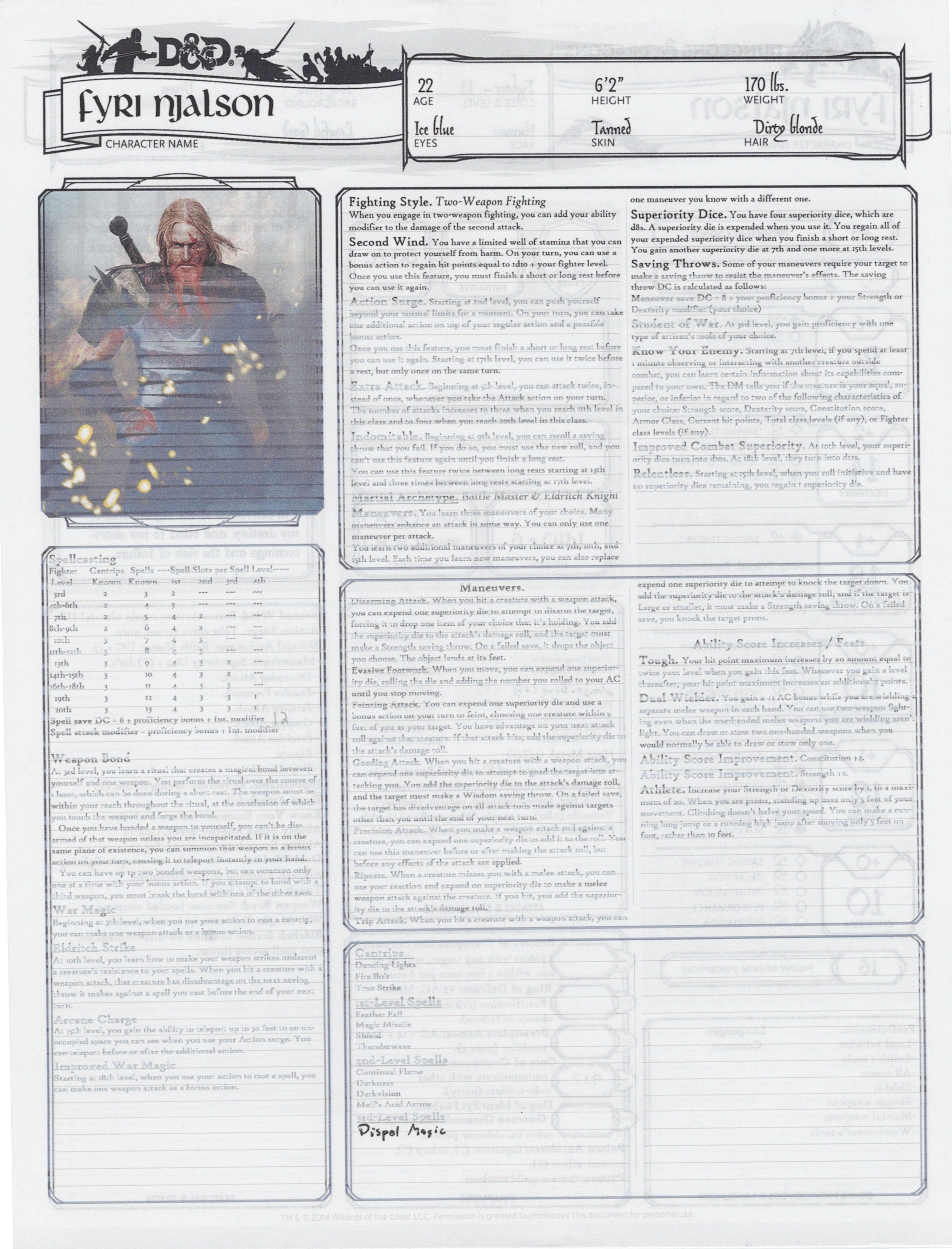 Now lets look at a new idea, the spellcasting fighter. Most likely this character would begin as an apprentice to some mage or wizard, having been pointed at as a bright lad in their youth or sold to the mage when they needed an assistant. They would spend their life observing and studying, learning to read multiple languages, scripts, and glyphs, poring through tomes at the behest of their master. There would be long nights of ritual casting, trips to gather components and ingredients, with strict guidance for the quality and nature of the products. The standards would be exacting, casting spells is deadly work.